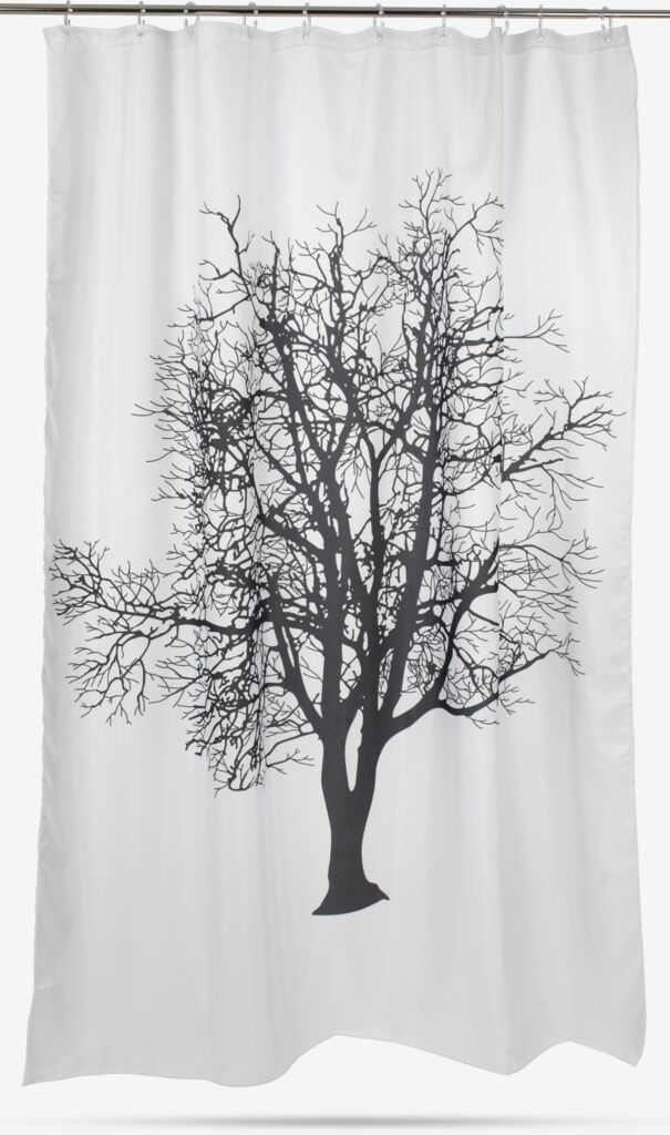 Snygg och fin men det regnar igenom draperiet vid dusch. Fått skaffa en billigare draperi och hänga innanför för att inte stänka utanför draperiet.