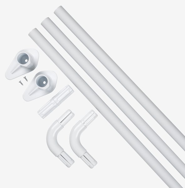 Spravil som z dvoch balení tvar U okolo vane. Tyče a plastové diely spĺňajú funkciu, na ktorú sú určené.