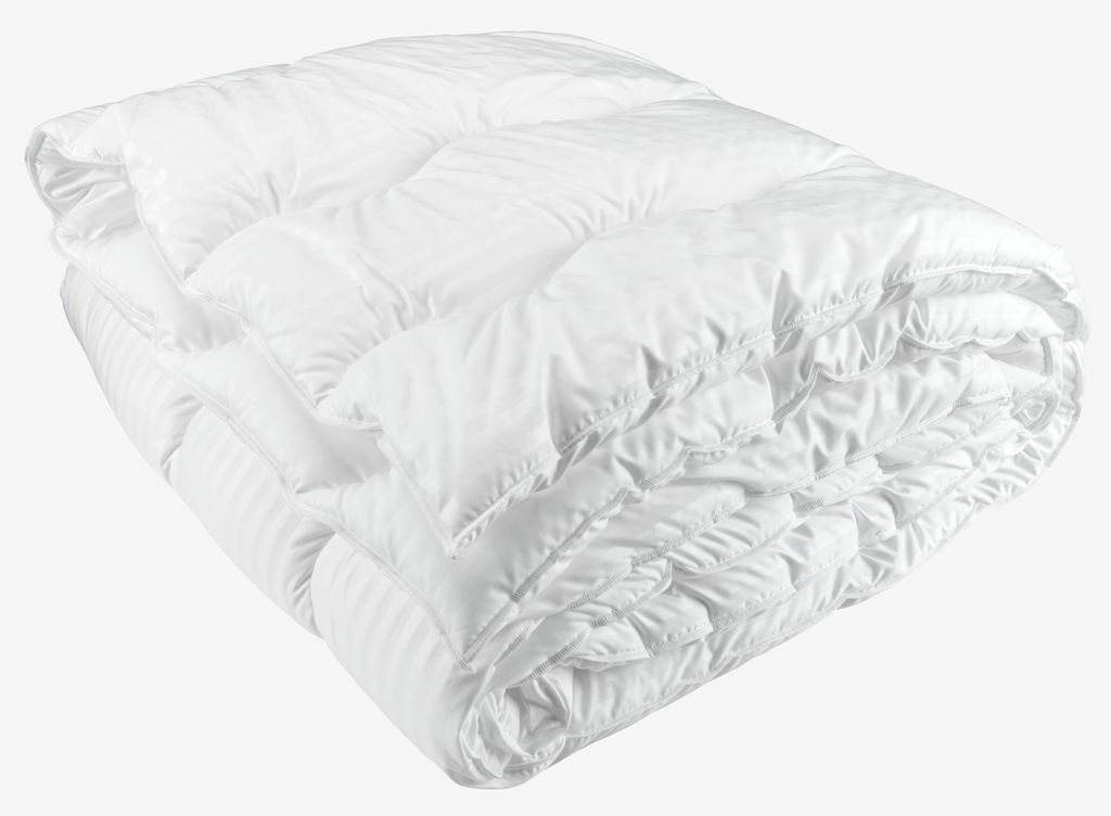 Airy, insulating filling of siliconised, spiral-shaped hollow-fibre, filling weight 1650g. Soft 100% polyester micro-fibre casing. Tog 10.5. Wash 60°C. King 240x220 cm