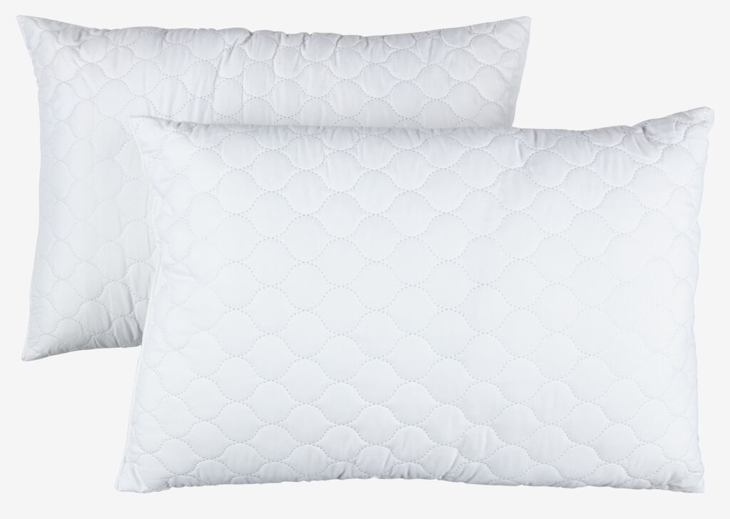 Fibre pillow 48x74 cm with polyester fibre filling, 600 g. 100% polyester casing. Quilted with polyester fibre. Wash 40°C. Pack of 2.