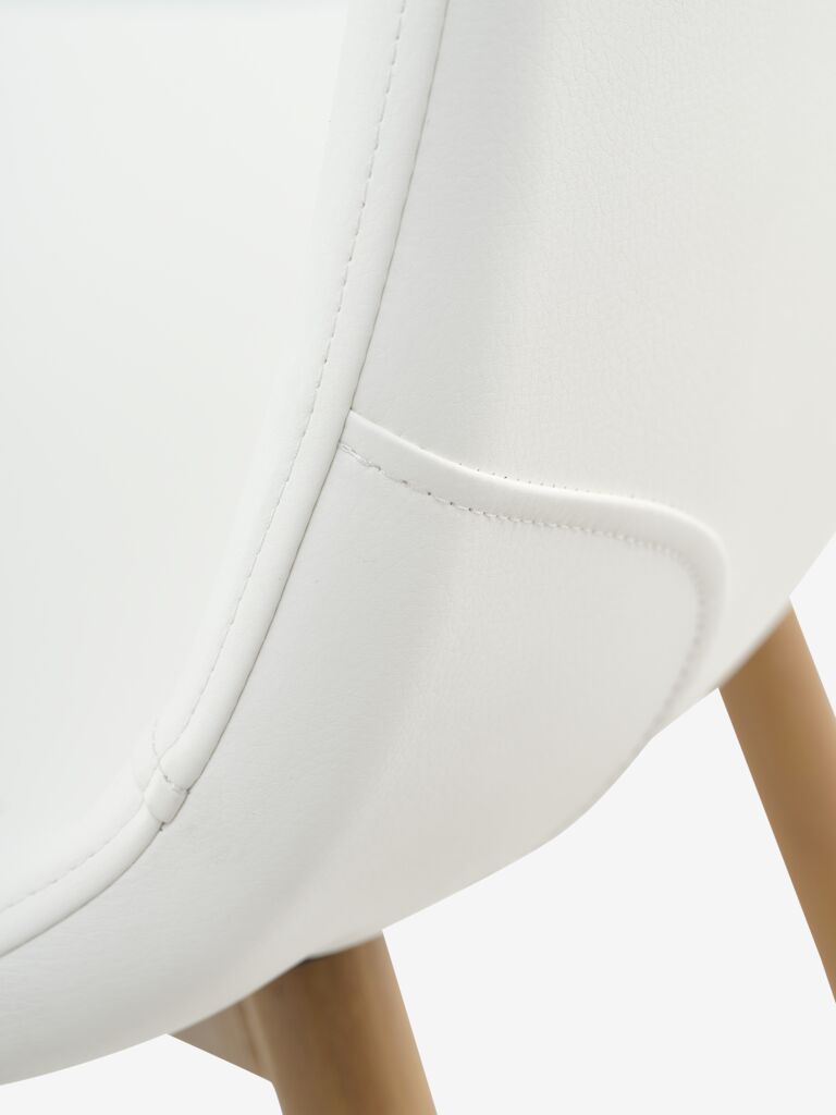 Dining chair with padded seat and backrest in white faux leather. Legs in steel with an oak look.