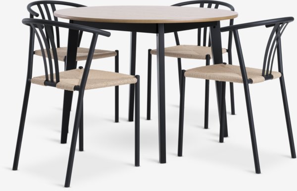 JEGIND + JYDERUPJEGIND D105 table oak + 4 JYDERUP chairs black/natural