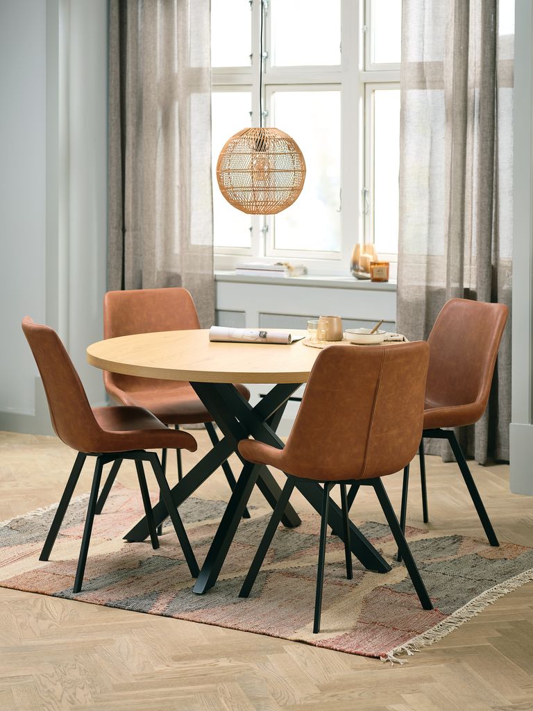 Specifications - Dining chair HYGUM swivel cognac faux leather/black