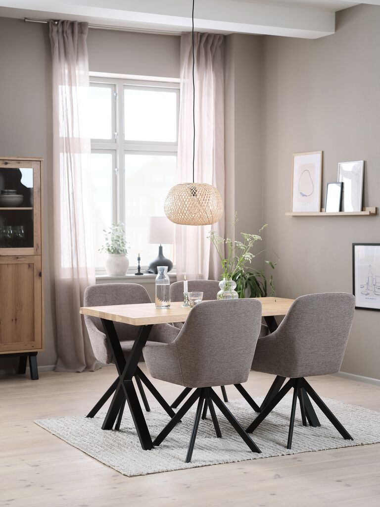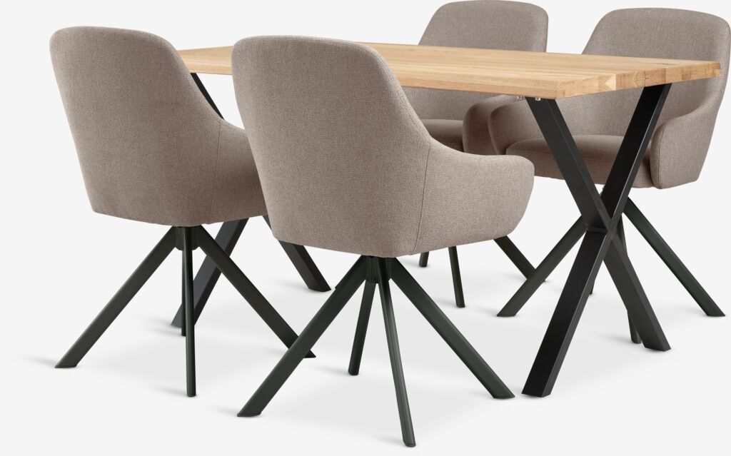 ROSLEV L140 table natural oak + 4 ROSTRUP sand/black