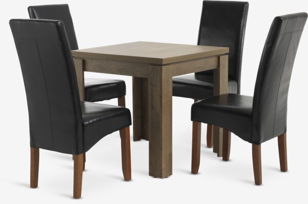 VEDDE + BAKKELYVEDDE L80/160 table wild dark oak + 4 BAKKELY brown