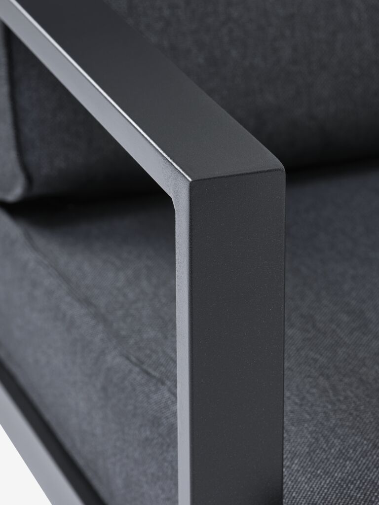 This lounge set has a frame of elegant, lightweight aluminium. It is rust resistant and requires no maintenance. Aluminium is weather resistant, which means it can withstand exposure to sun, moisture and temperature change.