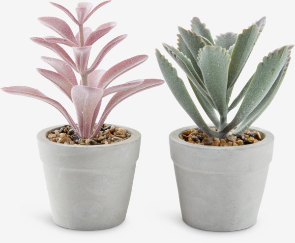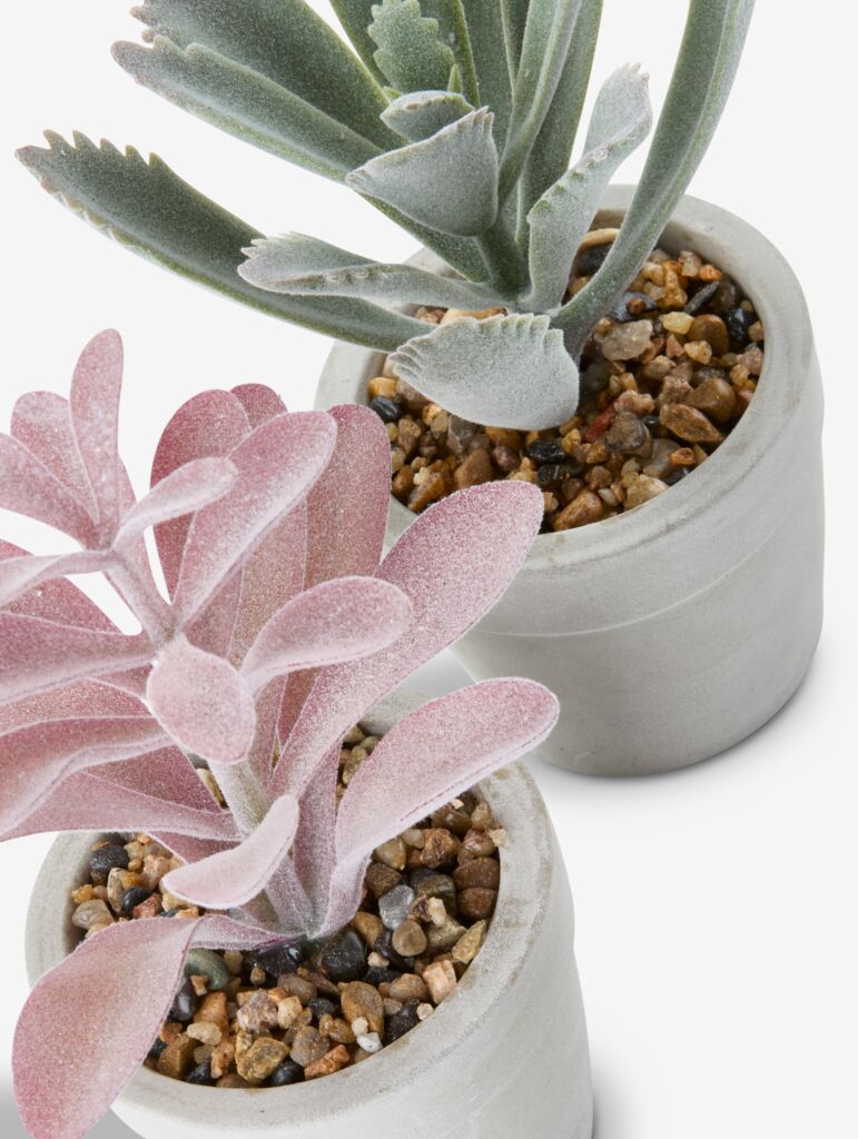 Small artificial plant in a light grey plant pot. Available in different designs and colours. A charming addition to any interior decoration that fits in both the living room, in the bathroom or in the home office. D7 x H15 cm