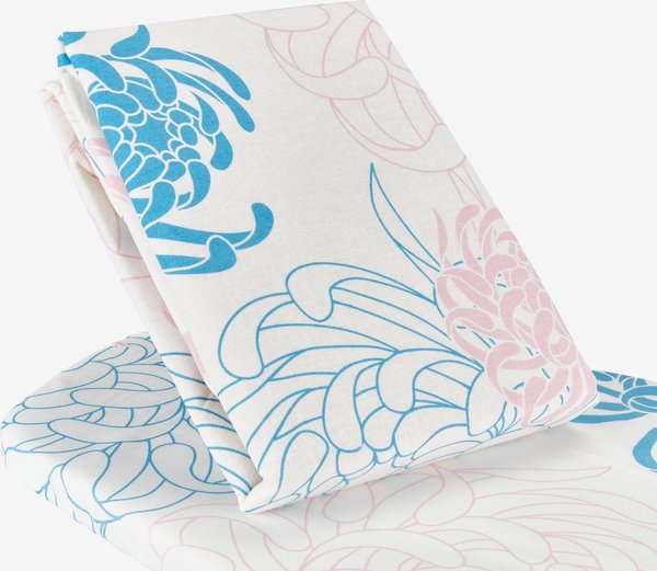 Ironing board cover featuring a floral design in white, light blue, and rose. With cotton surface and foam backing. This cover protects your ironing board from heat and steam from the iron. It also ensures that your clothes are ironed perfectly smooth without marks from the ironing board. W40 x L125 cm