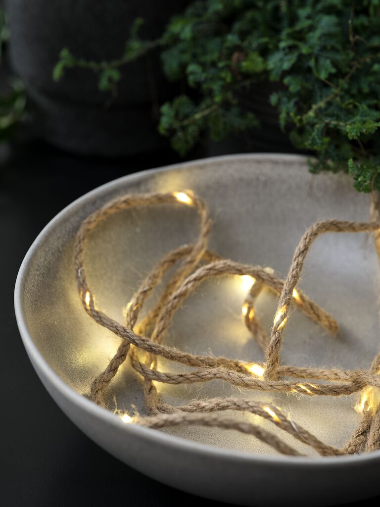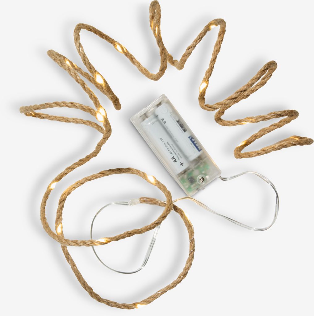 Indoor string lights. 20 LED. Warm white light. With timer. Excl. batteries. 2 m lights + 0.3 m cord