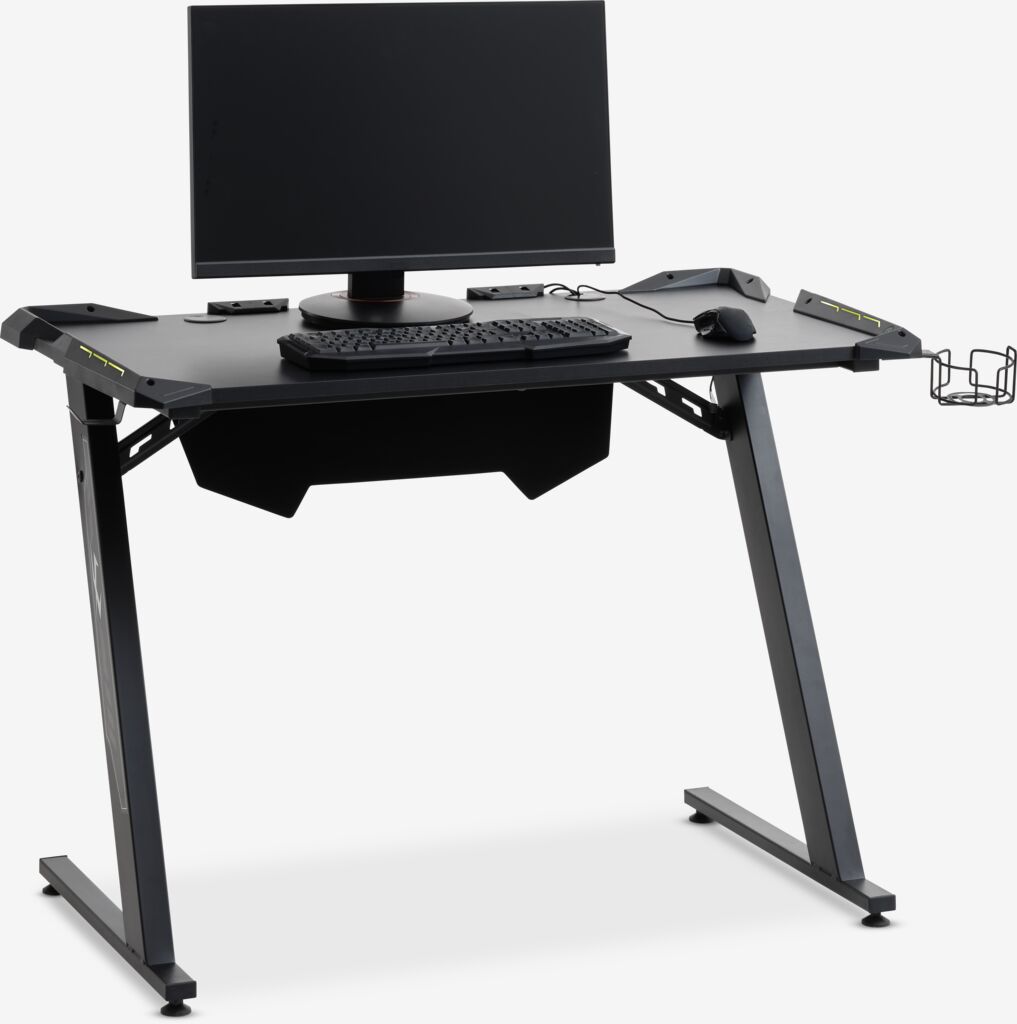 | Feature | Adjustable feet, Cup holder, Freestanding, Gaming mousepad, Headphone holder, Power bank not included, With LED light, Without storage space |